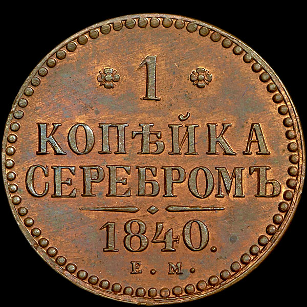 Копейка 1840 года, ЕМ. Новодел.
