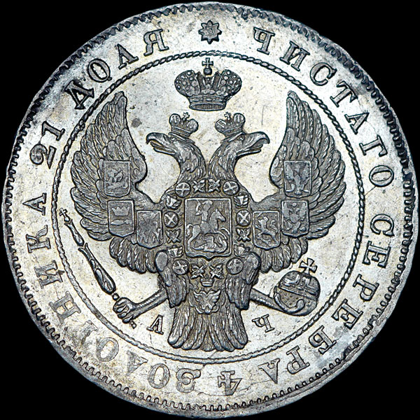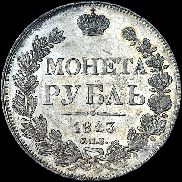Рубль 1843 года, СПБ-АЧ.