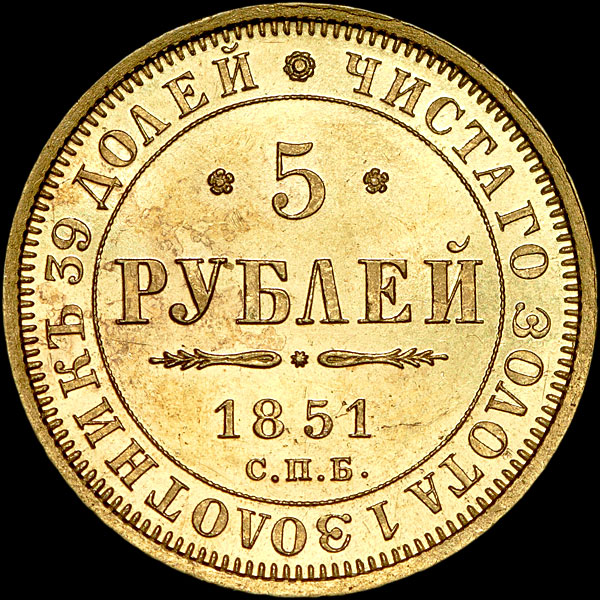 5 рублей 1851 года, СПБ-АГ.