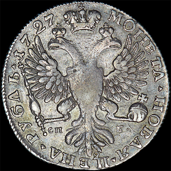 Особый тип портрета - "малый бант на правом плече". Трилистники разделяют надпись реверса.