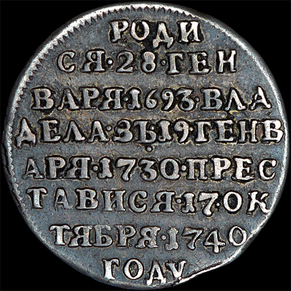 В память кончины императрицы Анны Иоанновны. Санкт-Петербургский Монетный Двор.