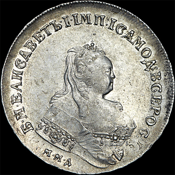 AU 55. Остаточный штемпельный блеск. Светлая серовато-бежевая патина. Перечеканенные рубли 1745 года встречаются крайне редко. Интересный коллекционный экземпляр.