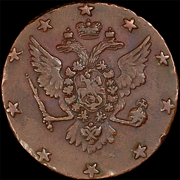AU 58. Чеканка на гладкой заготовке. Отличная прочеканка деталей рельефа. Ровная красно-коричневая длительного коллекционного хранения патина. Превосходный коллекционный экземпляр. Очень редка в подобном состоянии.