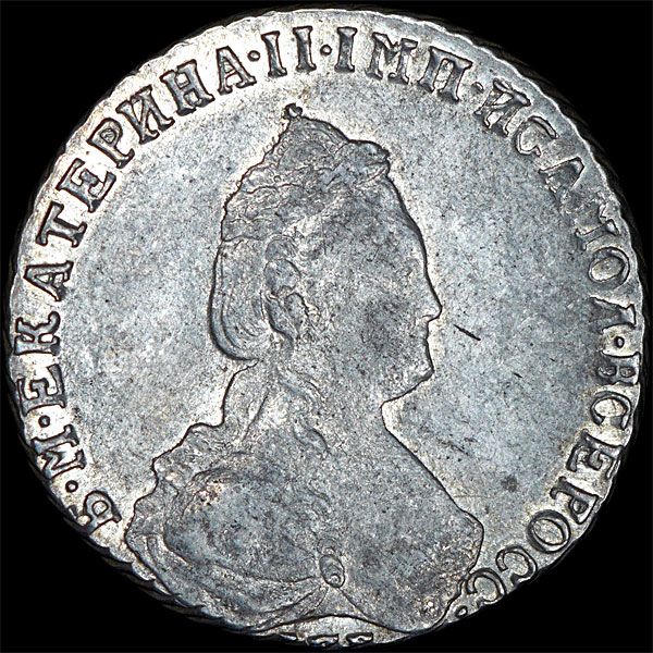 Серебро 4,52 г. Уздеников 1177. Биткин 404. Дьяков 160,556. AU 58. Частичный штемпельный блеск.