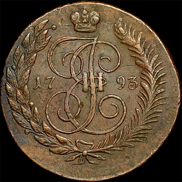 "Павловский перечекан". Чеканка в 1797 году на Красном Монетном Дворе в Москве. Гурт сетчатый.
