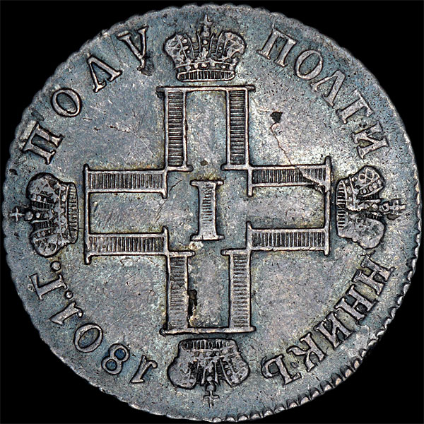 AU 53. Частичный штемпельный блеск. Черновато-серая длительного коллекционного хранения патина. Довольно редка.