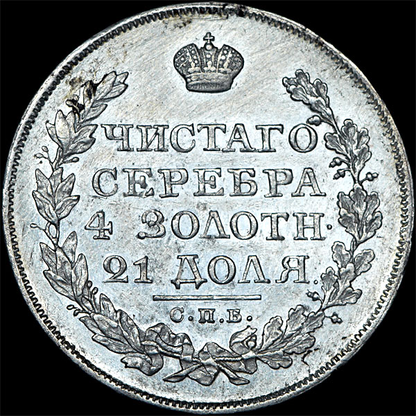 Серебро 20,93 г. Уздеников 1473. Биткин 135. MS 60. Частичная непрочеканка отдельных деталей рельефа.