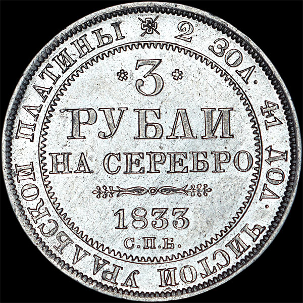 3 рубля 1833 года, СПБ