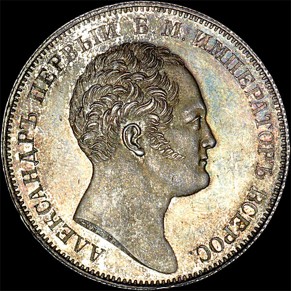 Чеканена по случаю открытия Александровской колонны. В обрезе портрета "GUBE F."