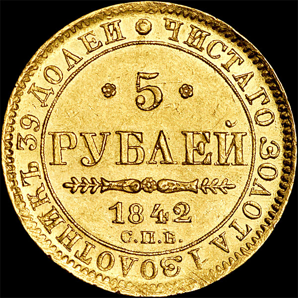 Золото 6,49 г. Уздеников 220 (•). Биткин 19. AU 55. Частичный штемпельный блеск. Довольно редка.