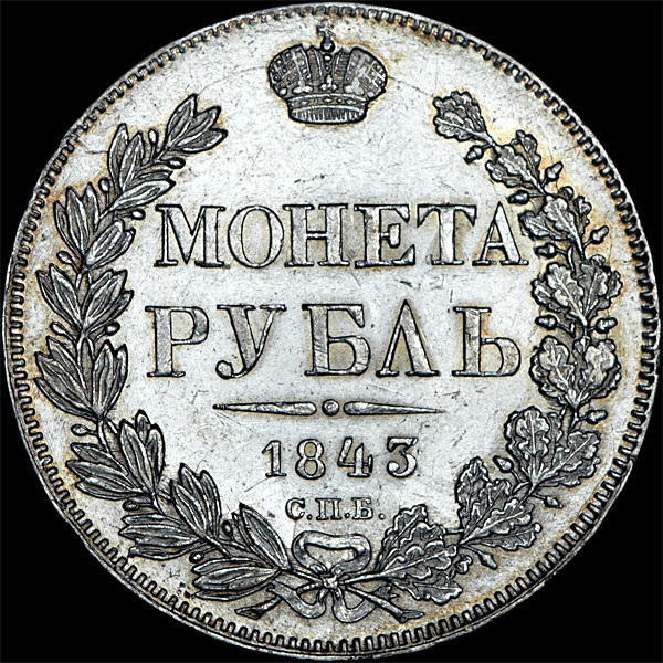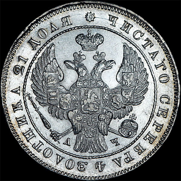 Серебро 20,64 г. Уздеников 1615. Биткин 202. AU 55. Штемпельный блеск. Начальная золотистая патина.