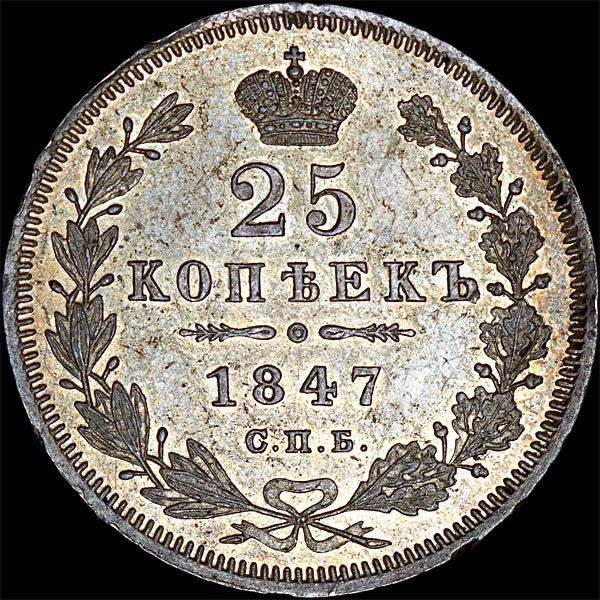 Серебро 5,23 г. Уздеников 1655. Биткин 294. MS 62. Штемпельный блеск. Золотисто-серая патина.