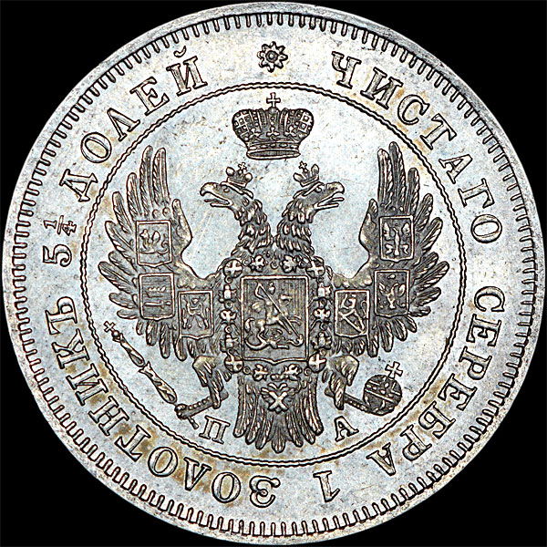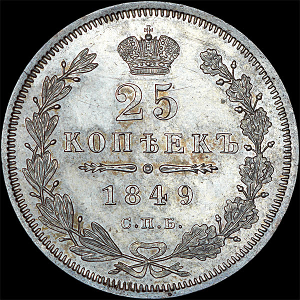 Серебро 5,14 г. Уздеников 1672. Биткин 300. MS 62. Штемпельный блеск. Светлая серовато-бежевая патина.