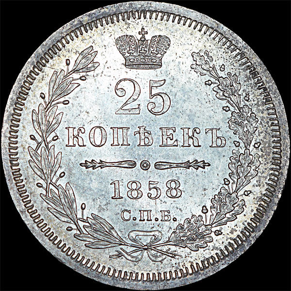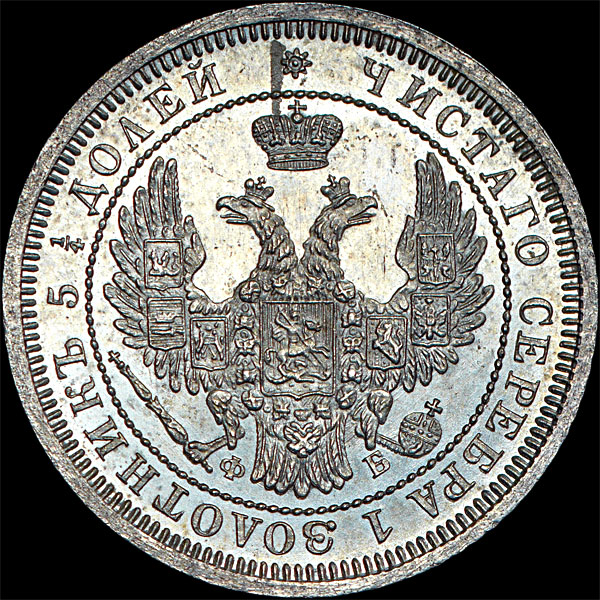 Серебро 5,16 г. Уздеников 1746. Биткин 56. MS 61. Легкий штемпельный блеск. Начальная золотистая патина.