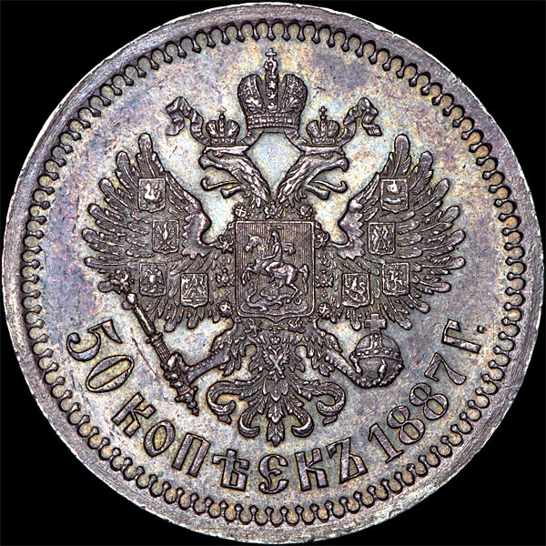 MS 62. Яркий штемпельный блеск. Глубокая радужная патина. Великолепный коллекционный экземпляр. Редка в подобном состоянии.