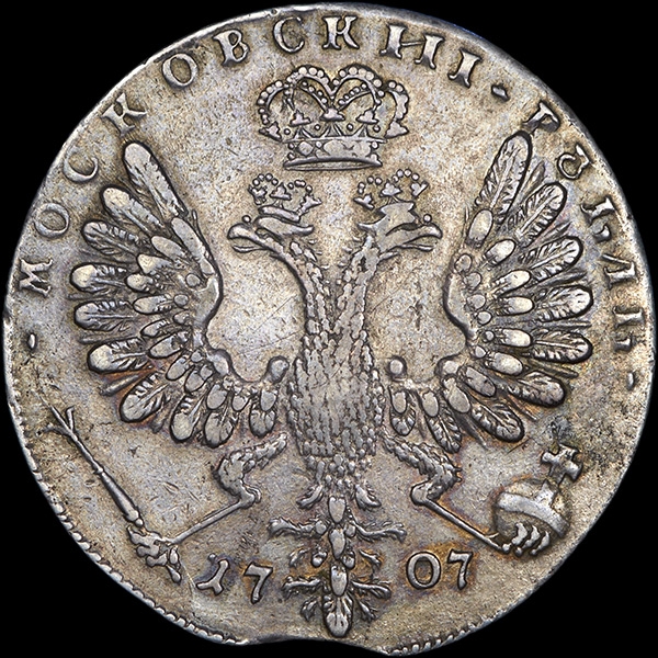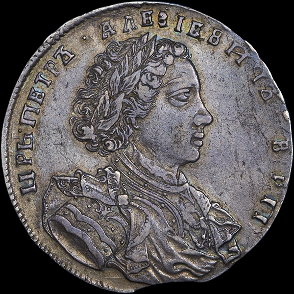 AU 53. В нижней части монеты характерный выкус от вырубки предыдущего кружка. Равномерная фиолетово-серая кабинетная патина. Прекрасный коллекционный экземпляр. Редка, особенно в подобной сохранности.