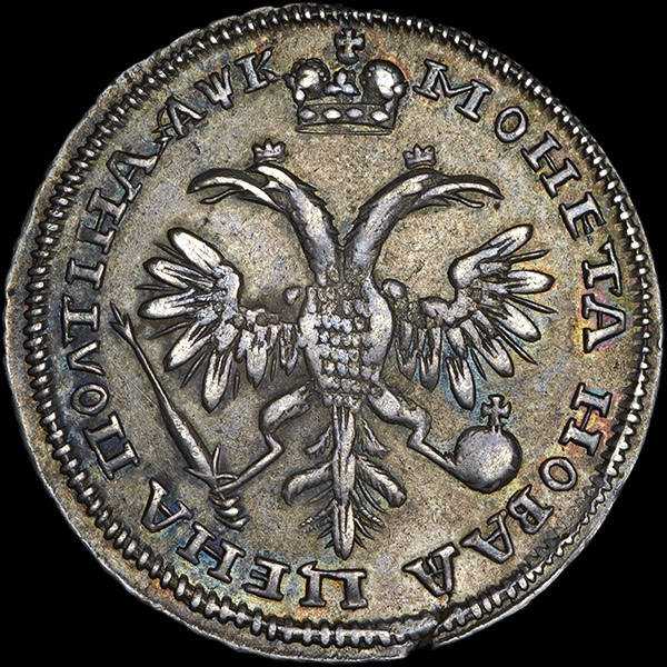 Кадашевский Монетный Двор. Портрет без наплечников. С пряжкой на плаще. Плащ подбит мехом. Без розетки на плече.