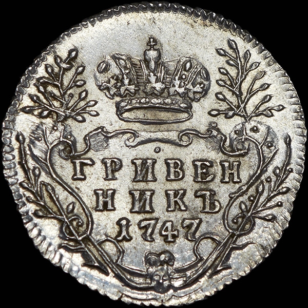 MS 63. Превосходное состояние для данного типа. Яркий штемпельный блеск. Полный прочекан всех деталей. Серебряные монеты мелких номиналов периода правления Елизаветы Петровны в подобной высокой сохранности встречаются очень редко.