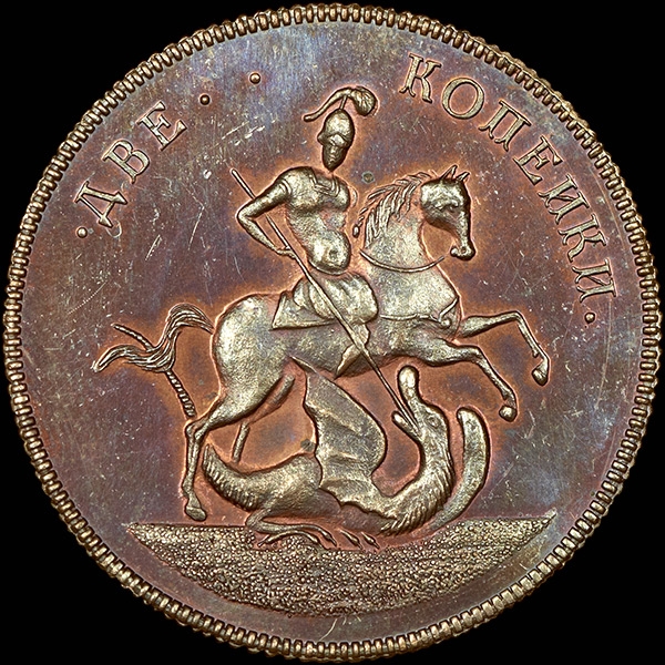 Номинал над Св.Георгием. Подобный новодел с гуртом №1 не описан в основных нумизматических каталогах.