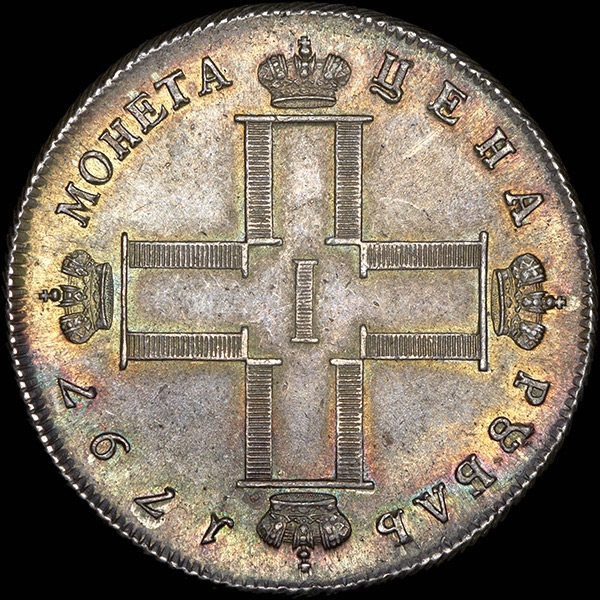 MS 63. Превосходная сохранность для данного типа. Полный прочекан центральной части аверса (что встречается у этих монет крайне редко). Яркий штемпельный блеск. Радужная патина. Крайне редка в столь высоком состоянии.