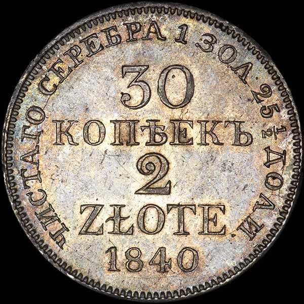 30 копеек - 2 злотых 1840 года, MW