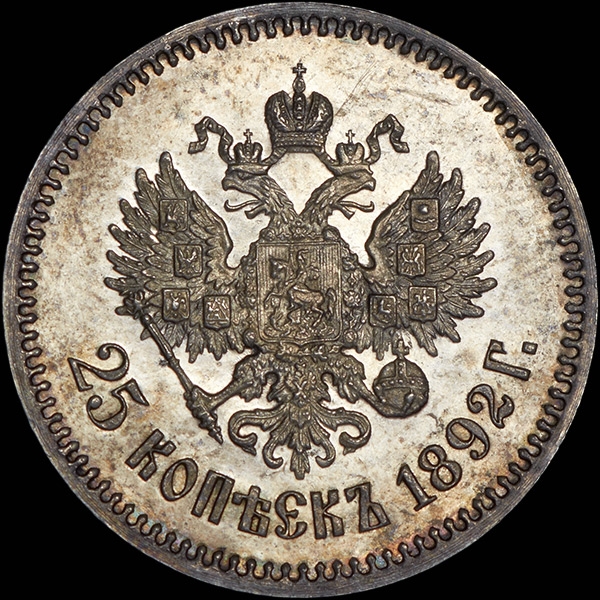 PROOF 62. Глянцевое поле. Темная патина. Великолепный коллекционный экземпляр. Очень редка в состоянии PROOF.