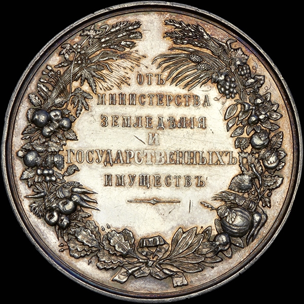 Наградная медаль без даты "От министерства земледелия и государственных имуществ"