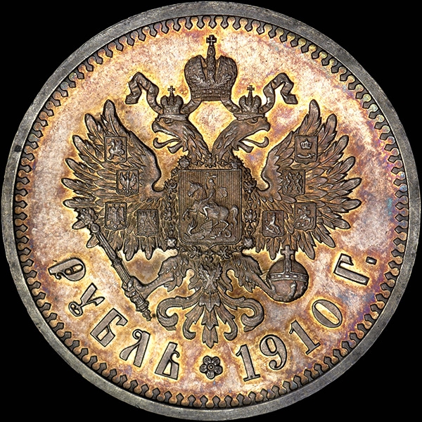 PROOF 66. Глубокий безупречный PROOF. Радужная патина. Изумительный коллекционный экземпляр. Крайне редка в состоянии столь высокого PROOF.