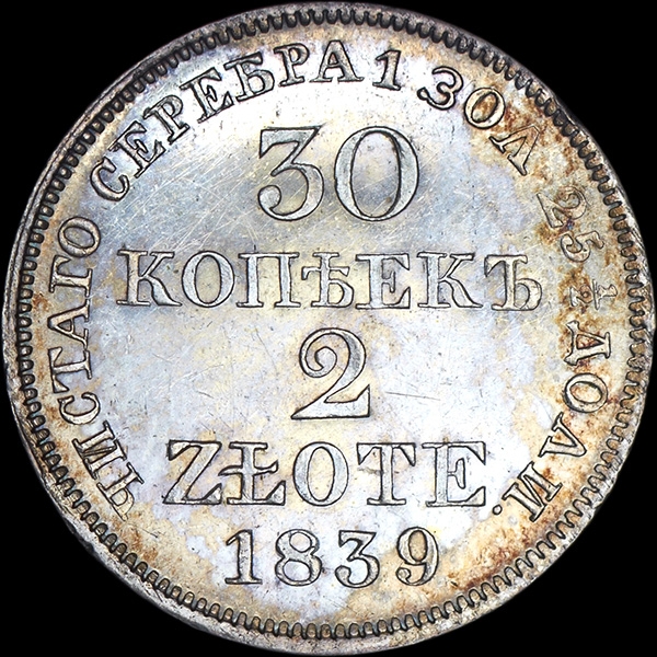30 копеек - 2 злотых 1839 года, MW