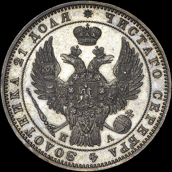 Орел образца 1847-49 гг. На реверсе корона образца 1847 года ("старый тип").