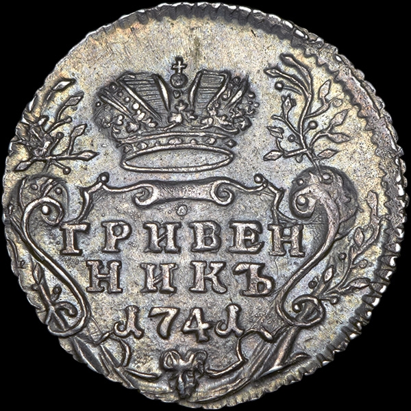 MS 63. Полный штемпельный блеск. Великолепная прочеканка рельефа. Классическая кабинетная патина. Монеты периода правления Иоанна Антоновича в столь изумительно высокой степени сохранности очень редки.