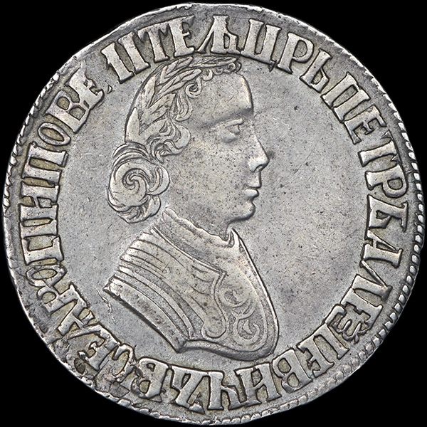 Кадашевский монетный двор. Портрет образца 1704-1705 гг. На реверсе внутри большой короны точки.
