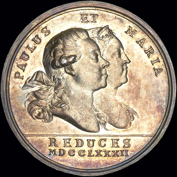 Медаль 1782 года "Возвращение Великого Князя Павла Петровича с супругой Марией Федоровной из европейского турне"