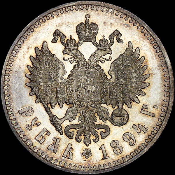 Представленный рубль 1894 года с портретом типа 1886 года относится к нумизматическим памятникам наивысшей степени редкости.