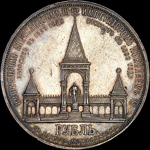 Чеканена по случаю открытия памятника императору Александру II в Москве. С точкой между "АГ" в гуртовой надписи.