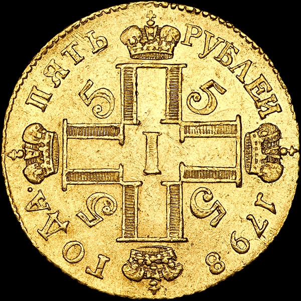 Несмотря на довольно большой тираж, 5-ти рублёвые монеты Павла I очень редки, поскольку большая часть тиражей была из-за соответствия пробы сплава в 1814 году переплавлена для чеканки дукатов, необходимых Российской армии, находившейся в Европе.
