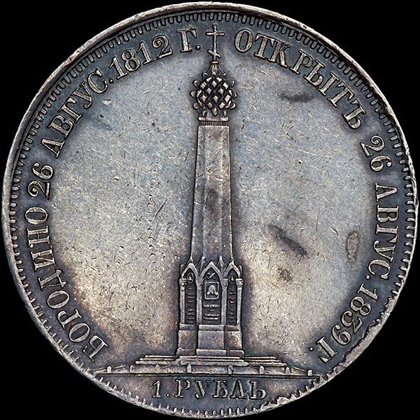 Чеканена по случаю открытия памятника-часовни на Бородинском поле. Под портретом "H.GUBE.F."